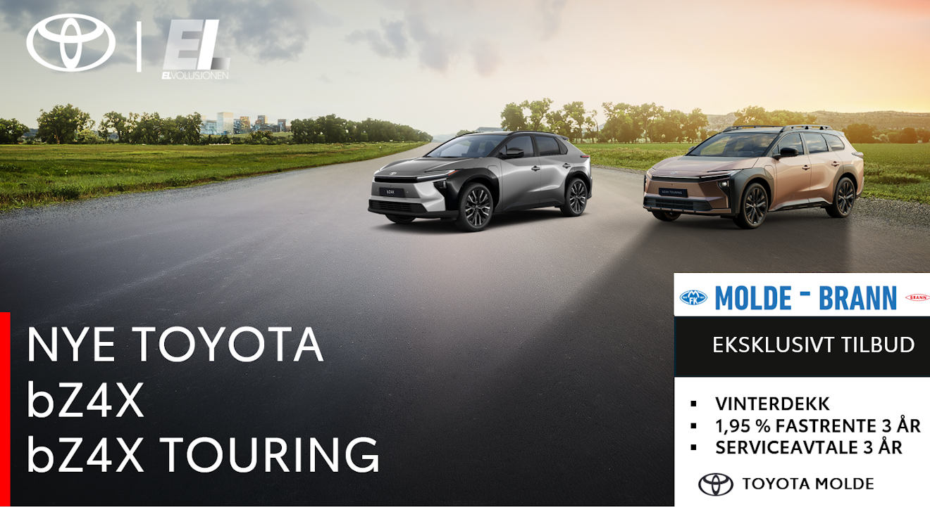 I forbindelse med at Toyota Molde er kampsponsor til Molde Fk - Brann ønsker vi å gi dere et eksklusivt tilbud på Toyota bZ4X. Denne dagen slår vi til med: